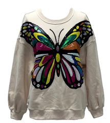 Introducing the QUEEN OF SPARKLES Oversized BUTTERFLY Sweatshirt — where cozy meets couture. This sweatshirt is truly STUNNING!! With dazzling sequin butterflies fluttering across ultra-soft fabric, this statement piece turns everyday comfort into a head-turning moment. Designed with a relaxed, oversized fit and signature sparkle, it’s your new go-to for effortless glam.