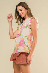 ALISTAIR Floral RuffleNeck FlutterSleeve Tie Top