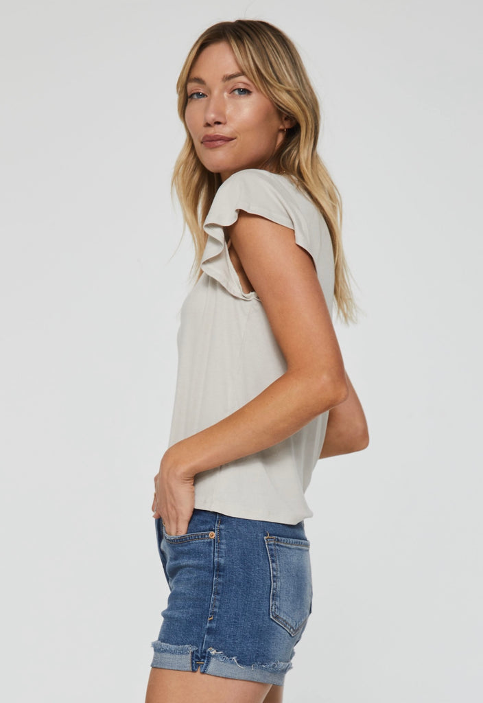 ANOTHER LOVE Flutter Sleeve MELEE V-Neck Smocked Shoulder Top