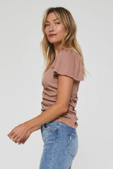 ANOTHER LOVE Shirred SADE Flutter Sleeve Top