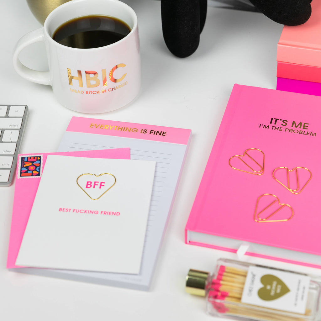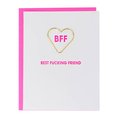 Our "Best Fucking Friend" card is letterpress printed on a vintage printing press in sunny California. Card includes a heavy duty heart paper clip.