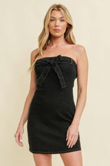 CD11882A - STRAPLESS BOW DETAIL DENIM MINI DRESS: Black Denim / L