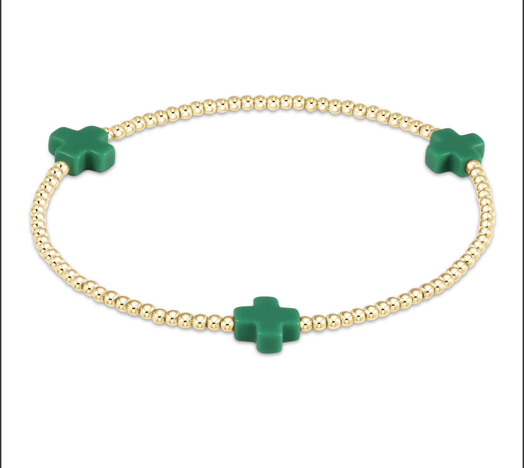 ENewton EMERALD Signature CROSS Gold Pattern 3mm Bead Bracelet