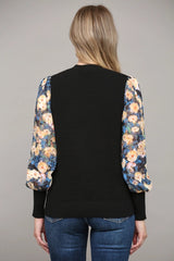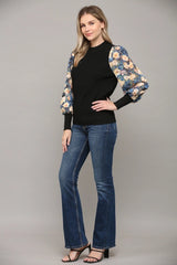 DYLAN Contrast BurnOut Floral Sleeve Top
