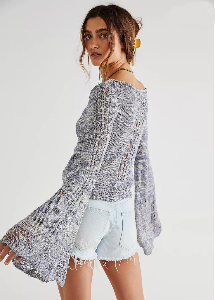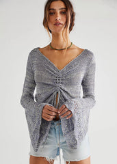 FREE PEOPLE Tie/Rouche Front ZINNIA BellSleeve Top