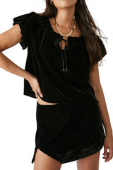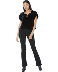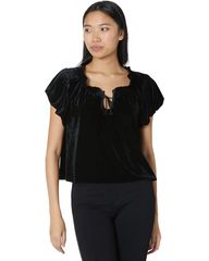 The draped fit and pleated puff sleeve of this top by Free People lend a cascading feel to the piece, helped by the sumptuous velvet finish.