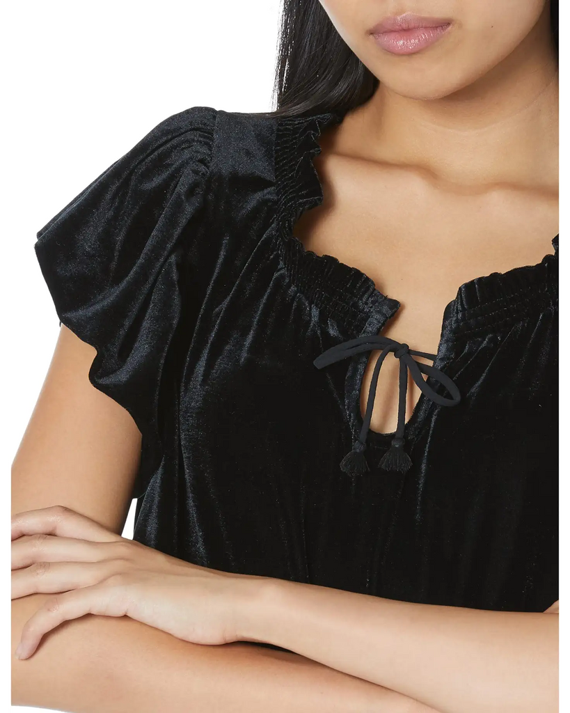 FREE PEOPLE Velvet TERESE Puff Sleeve Tie Neck Top