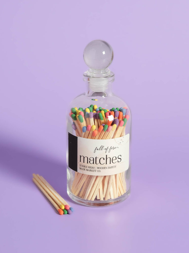 A symphony of sophistication and flame, designed to ignite your senses and elevate any ambiance. Encased in opulent glass topped with a chic orb, these matches epitomize the essence of 'Full of Fire' style. Each bottle not only exudes beauty but also serves a practical purpose, featuring a convenient striker on every label. Elevate your experience with these exquisite matches – where function meets finesse, and fire meets flair.