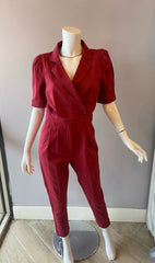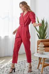 GAMETIME Puff~Sleeve Denim Wrap Jumpsuit