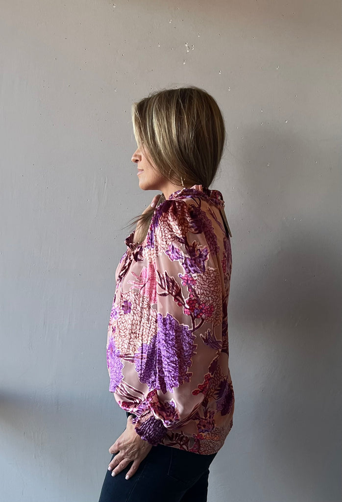 *IVY JANE Burn Out FROST Velvet Mock Neck Top