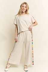 Mineral Washed Real Crochet patch side trim Cropped Pants