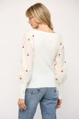 POPPY Embroidered Floral~Sleeve Square~Neck Top