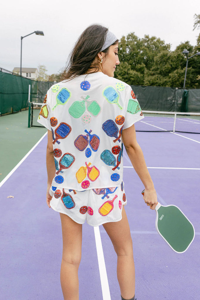 QUEEN OF SPARKLES Sequin PICKLEBALL Active Tee Top
