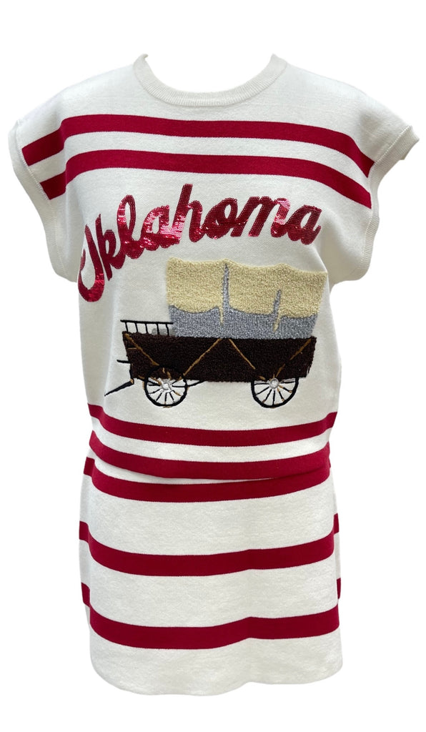 QUEEN OF SPARKLES Stripe Sequin OKLAHOMA Schooner Short Sleeve Top