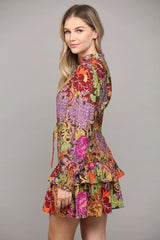 RIO Floral Belted Ruffle Skirt Dress