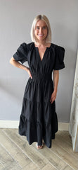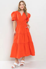 THEORY V-Neck Tiered PuffSleeve Maxi Dress