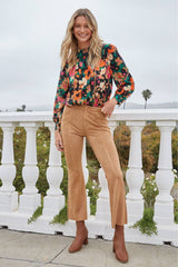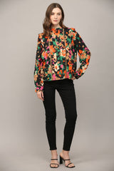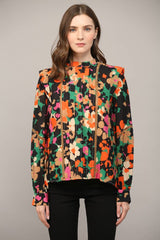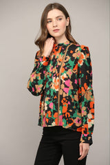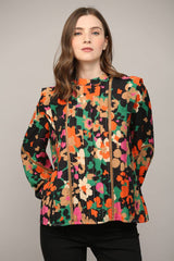 RIO Floral Tucked/Lace Insert Woven Blouse Top
