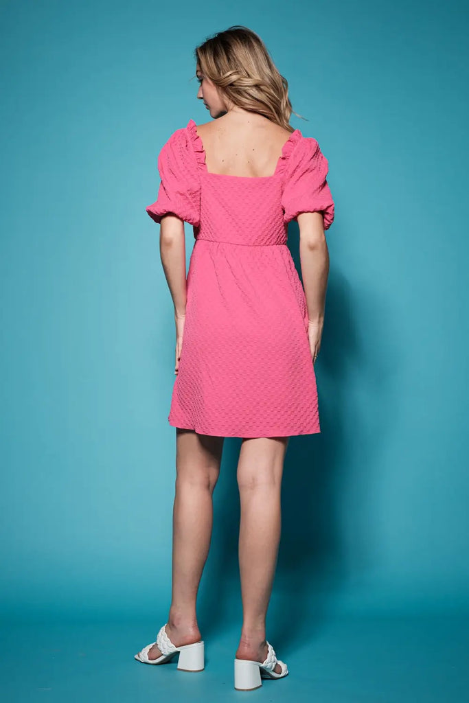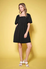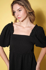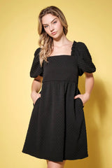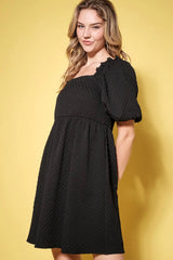 VIOLA Square~Neck Balloon~Sleeve Textured~Knit Dress